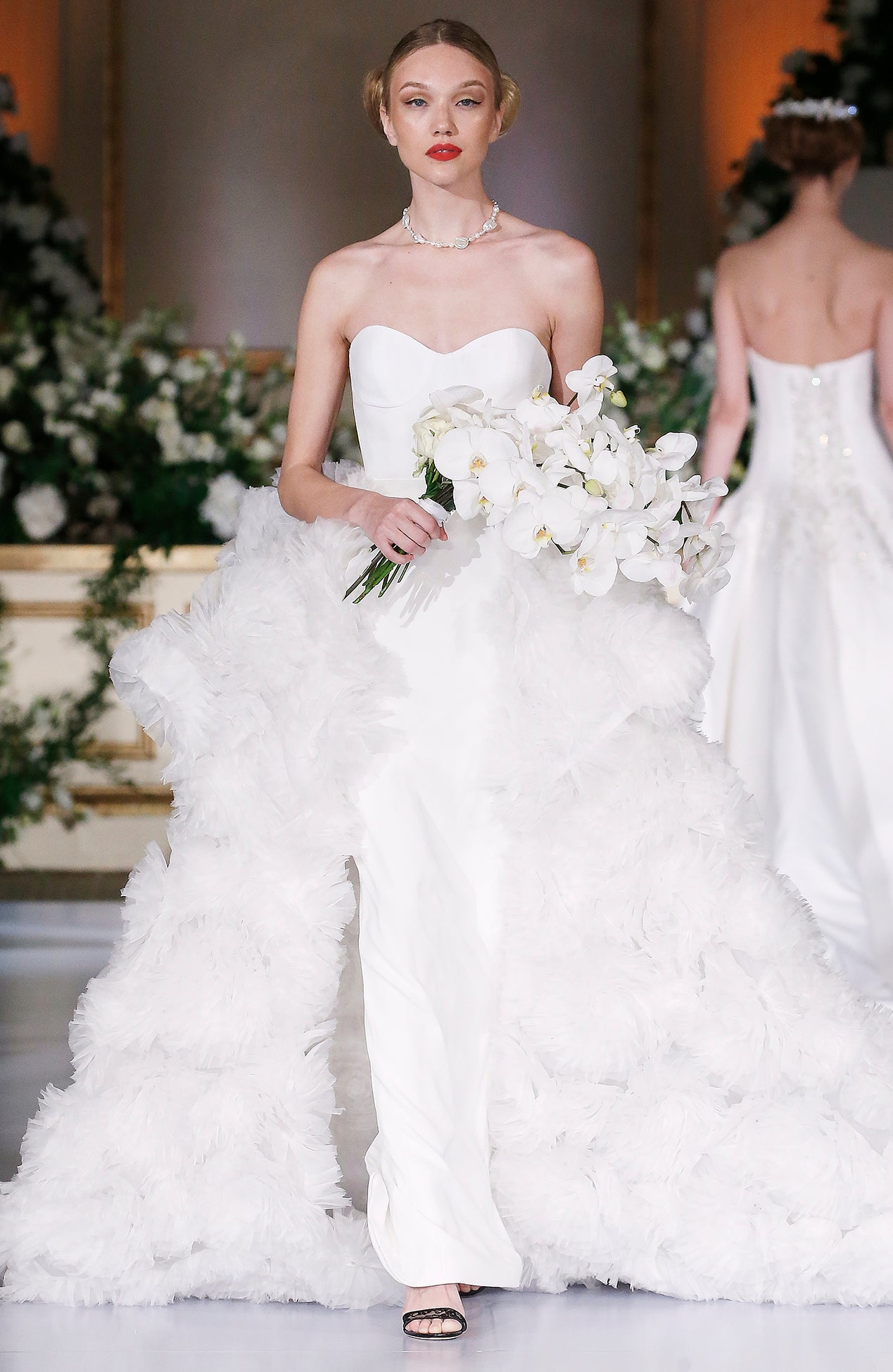 Sweetheart crepe gown with layered puffy tulle detachable skirt
