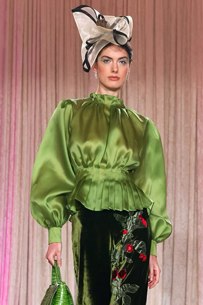 READY TO WEARA pairing between luxurious velvet, feminine floral embroidery and tailored organza blouse.