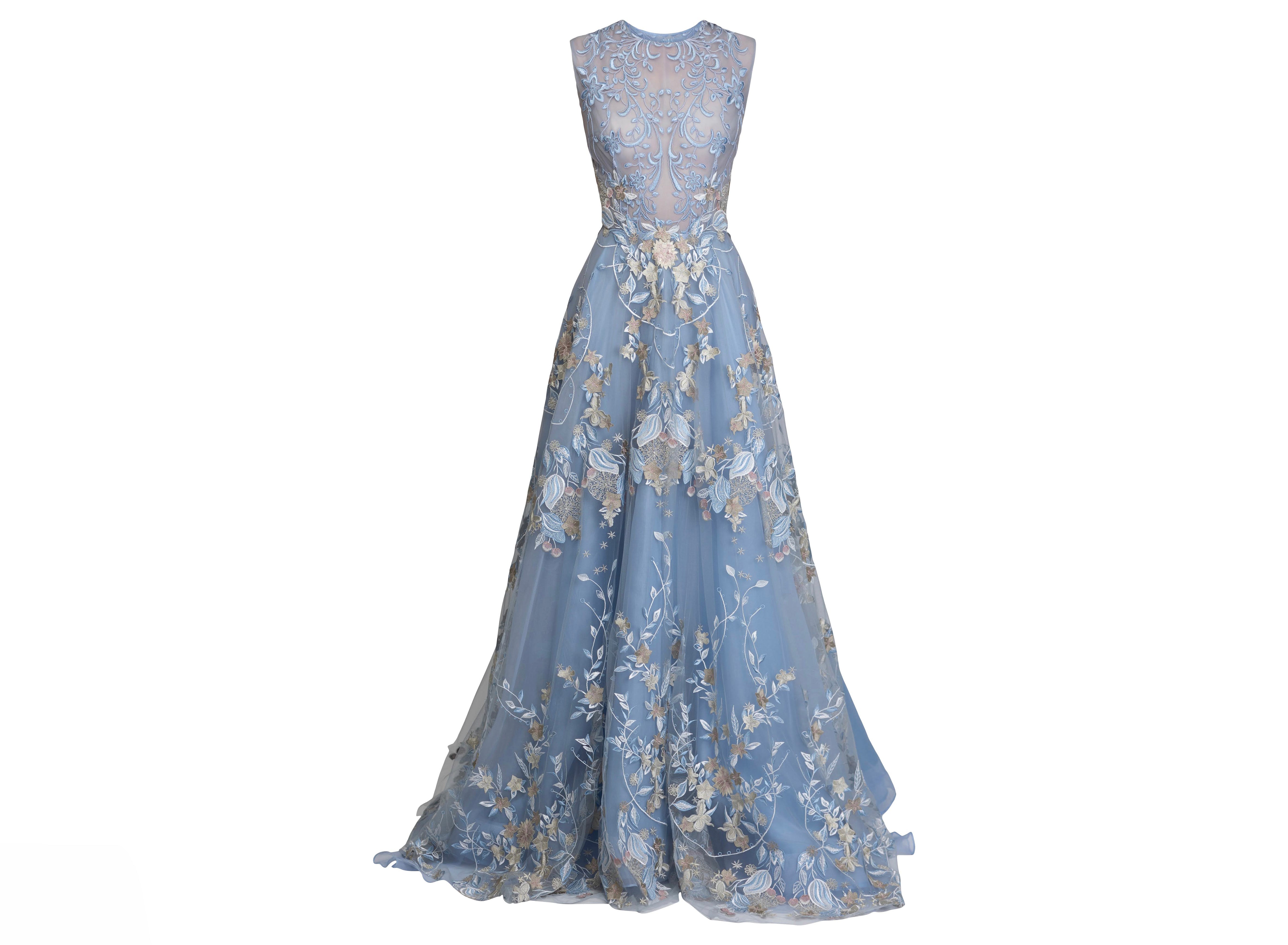 Scoop neck mixed embroidery tulle gown