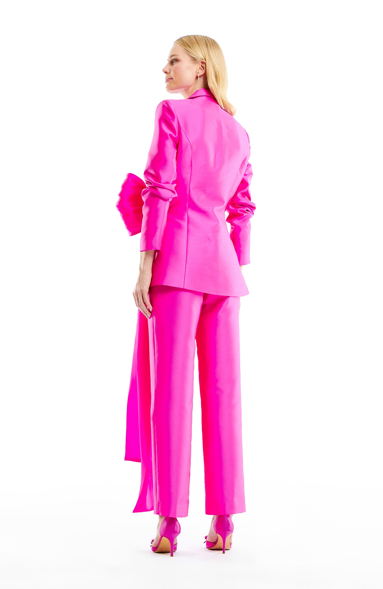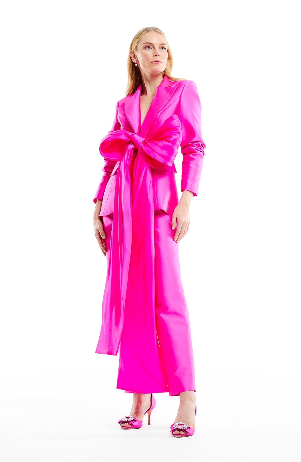 •This classic blazer is given a feminine chic update with an oversized bow.