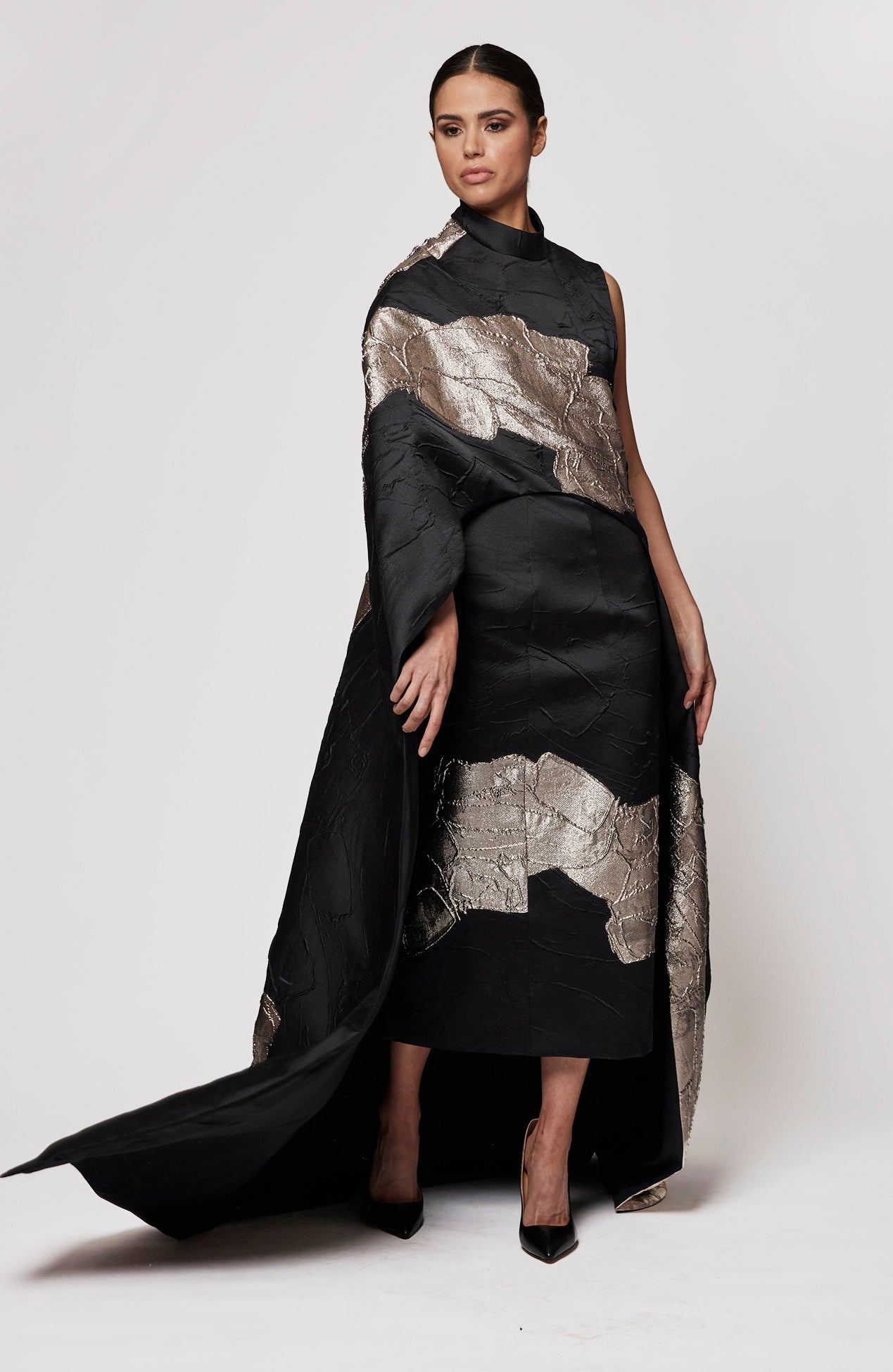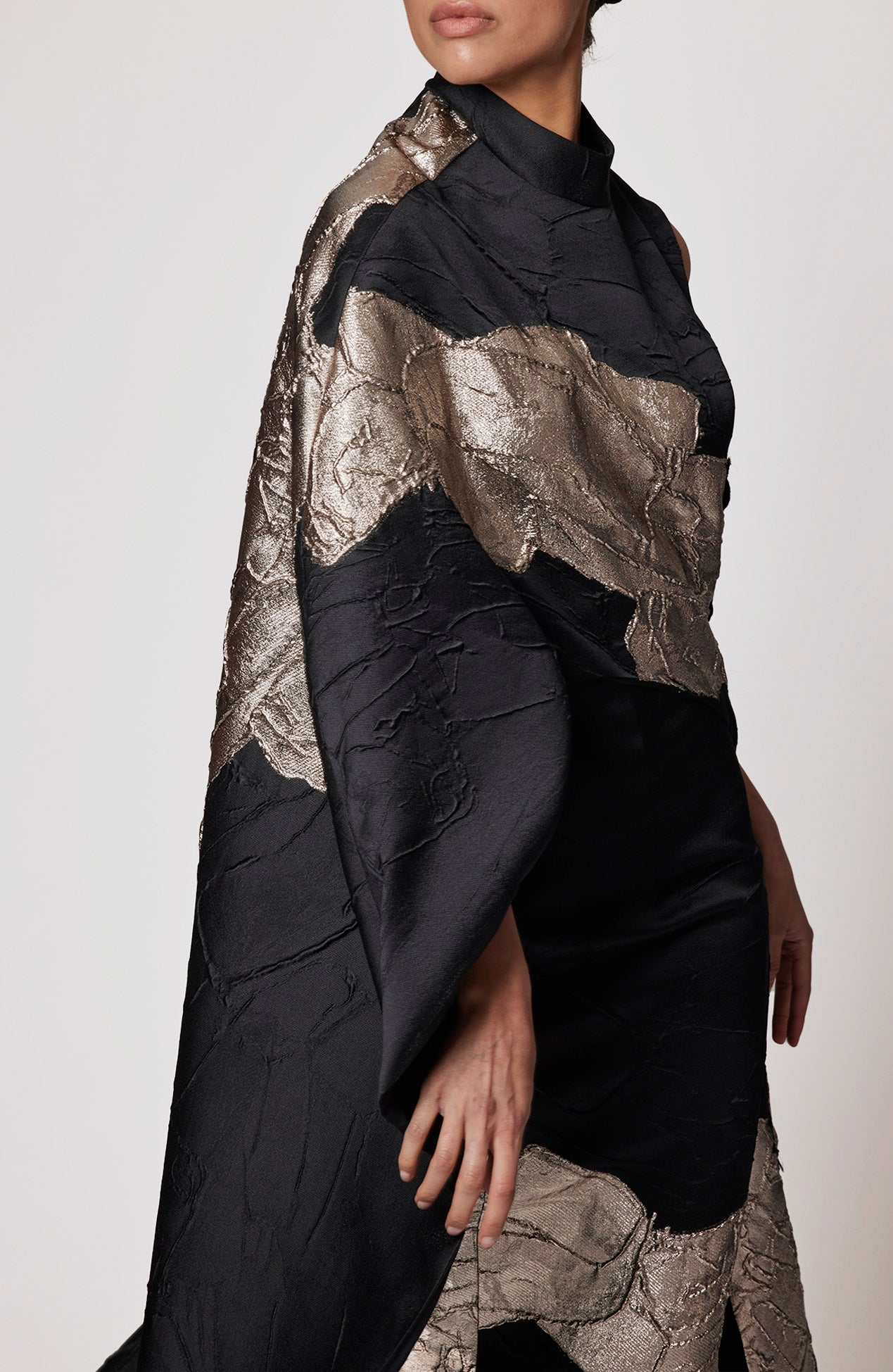 Asymmetrical sleeve metallic jacquard top