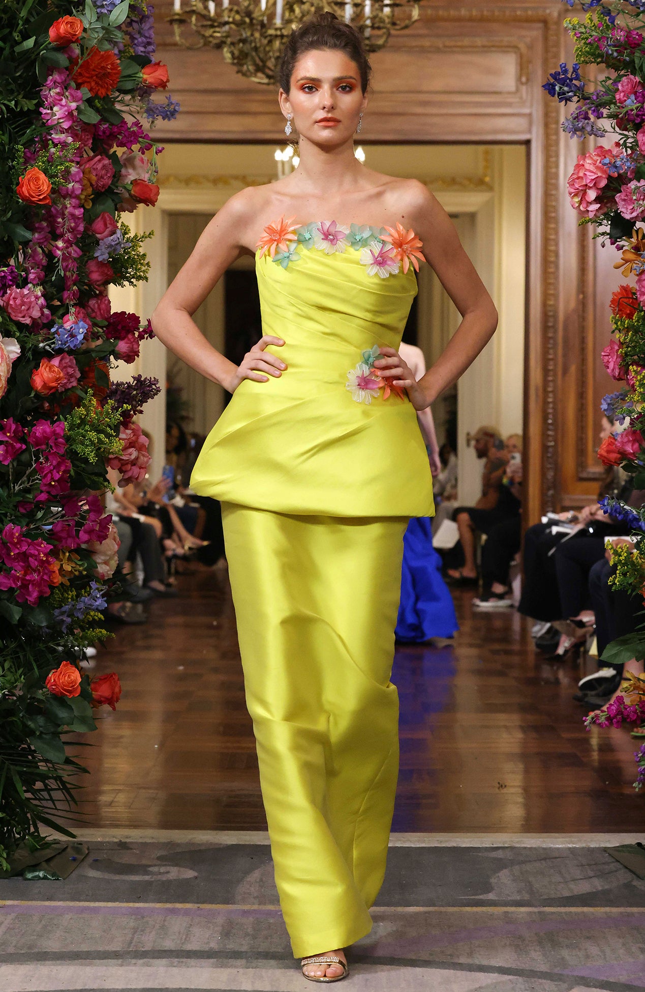 Strapless mikado peplum gown wtih 3d glass floral appliques