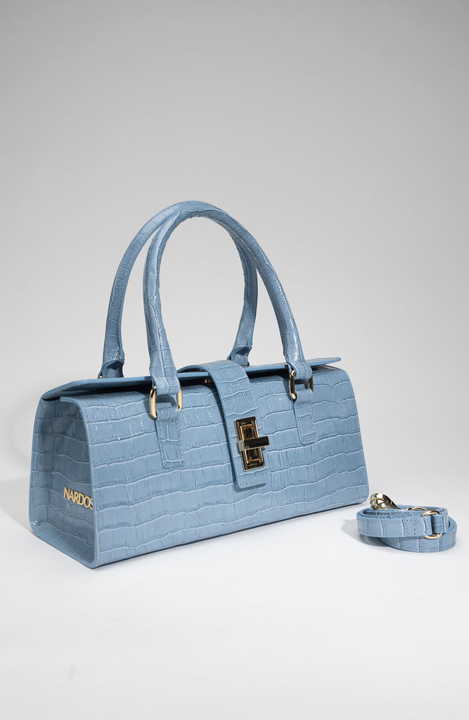 Crocodile Print mini Leather bag with gold hardware