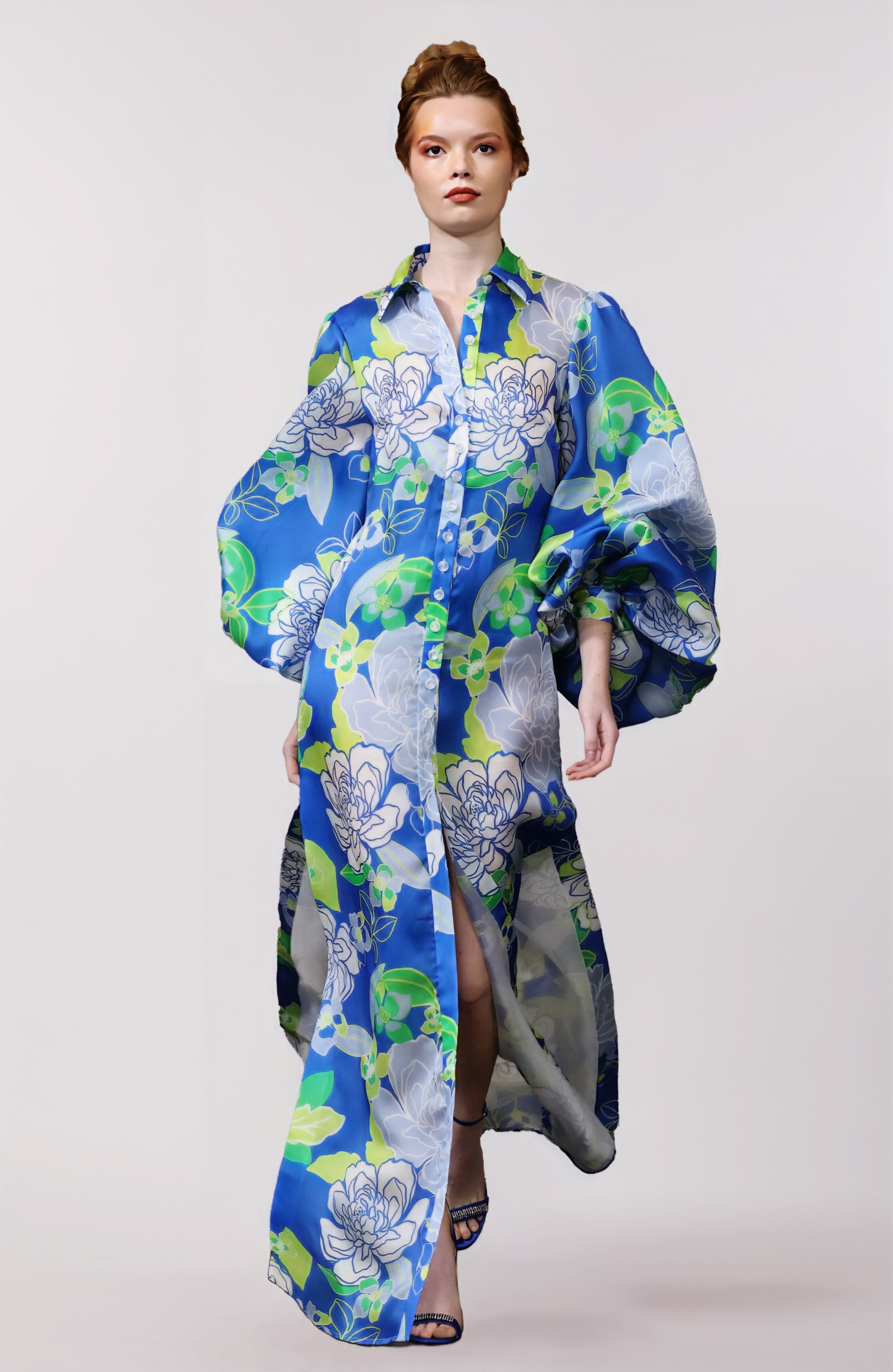Long sleeve floral tulle netting dress with corset base dress