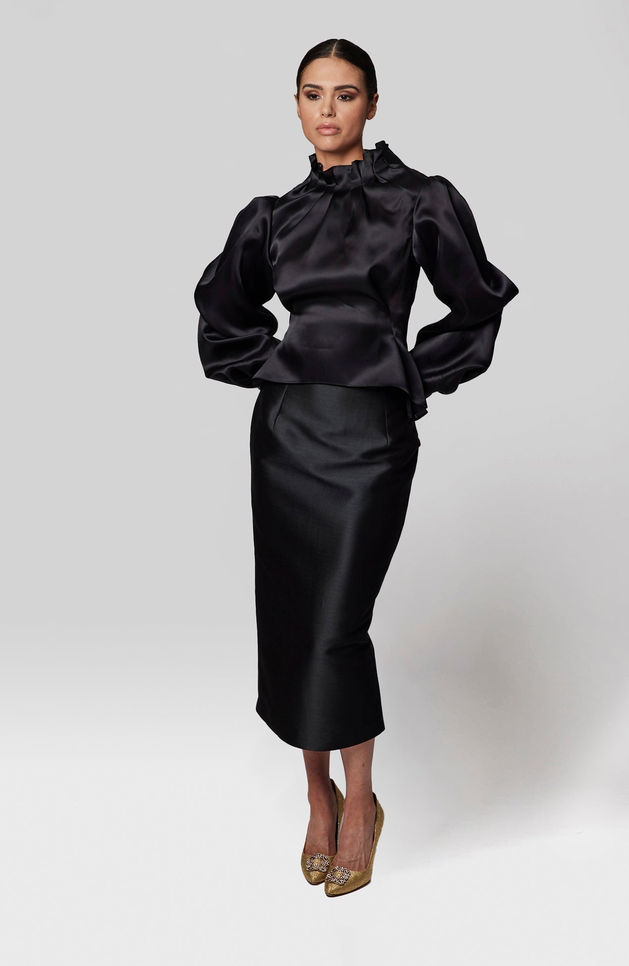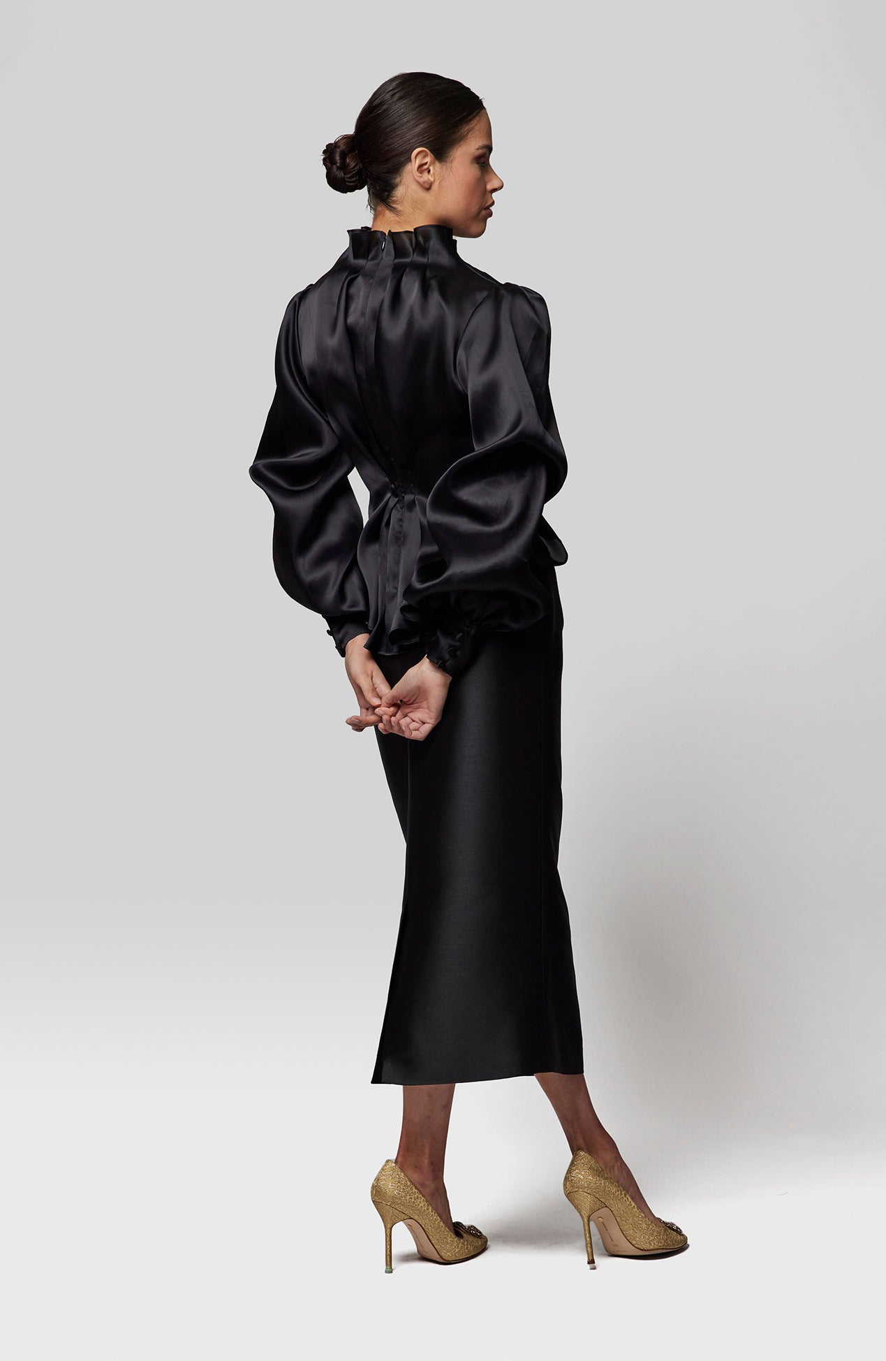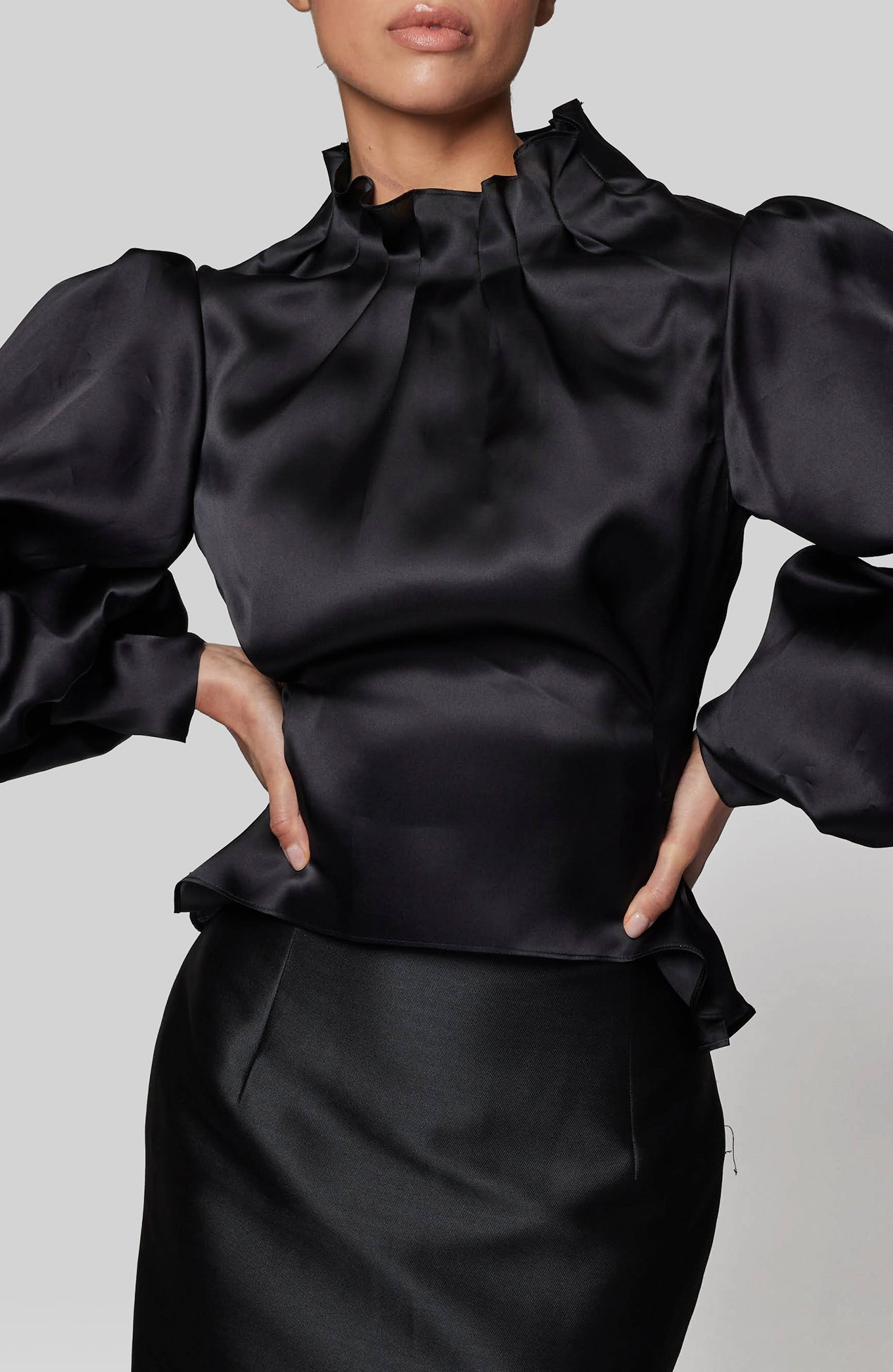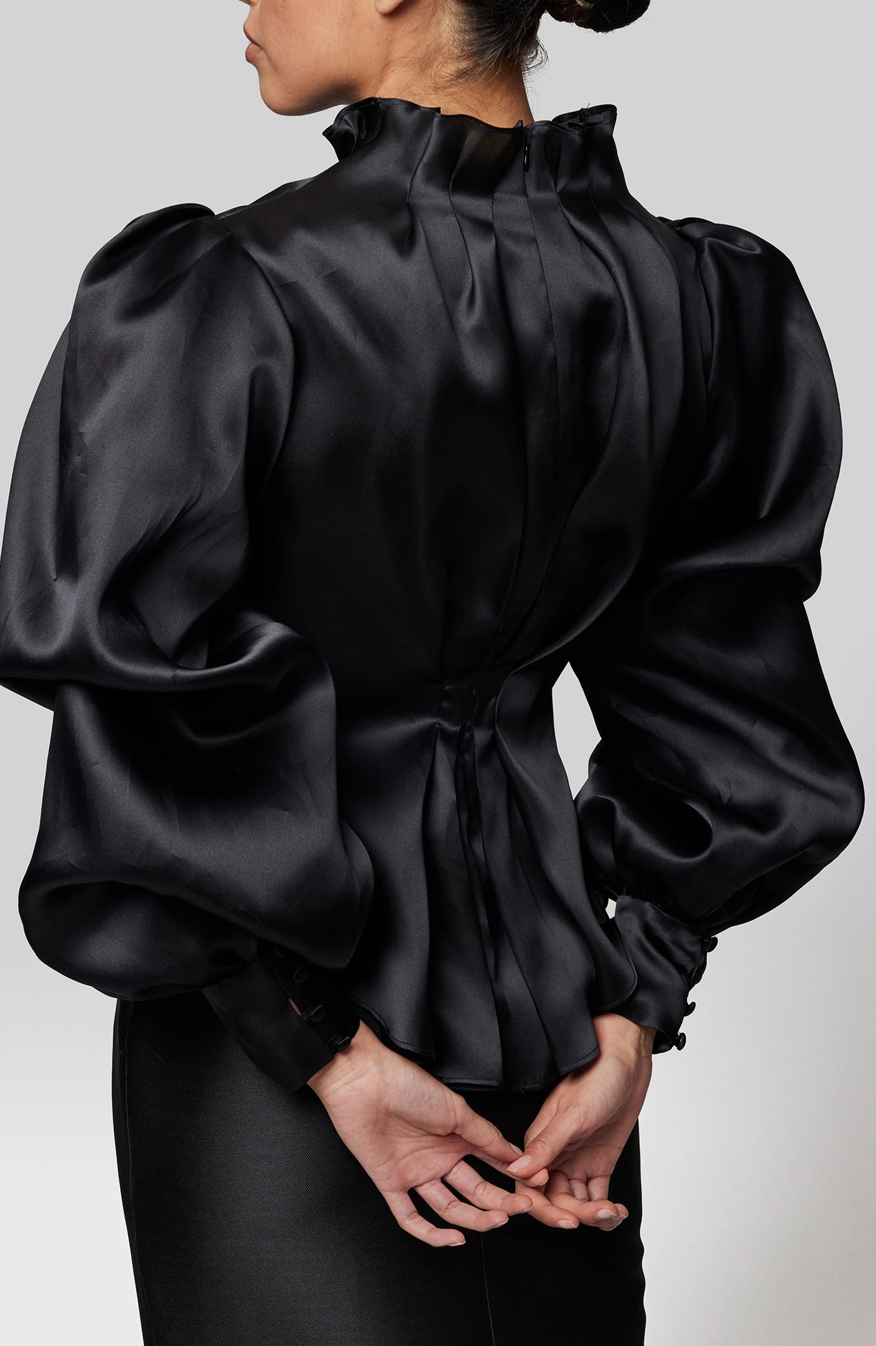 High neck puff sleeve organza top
