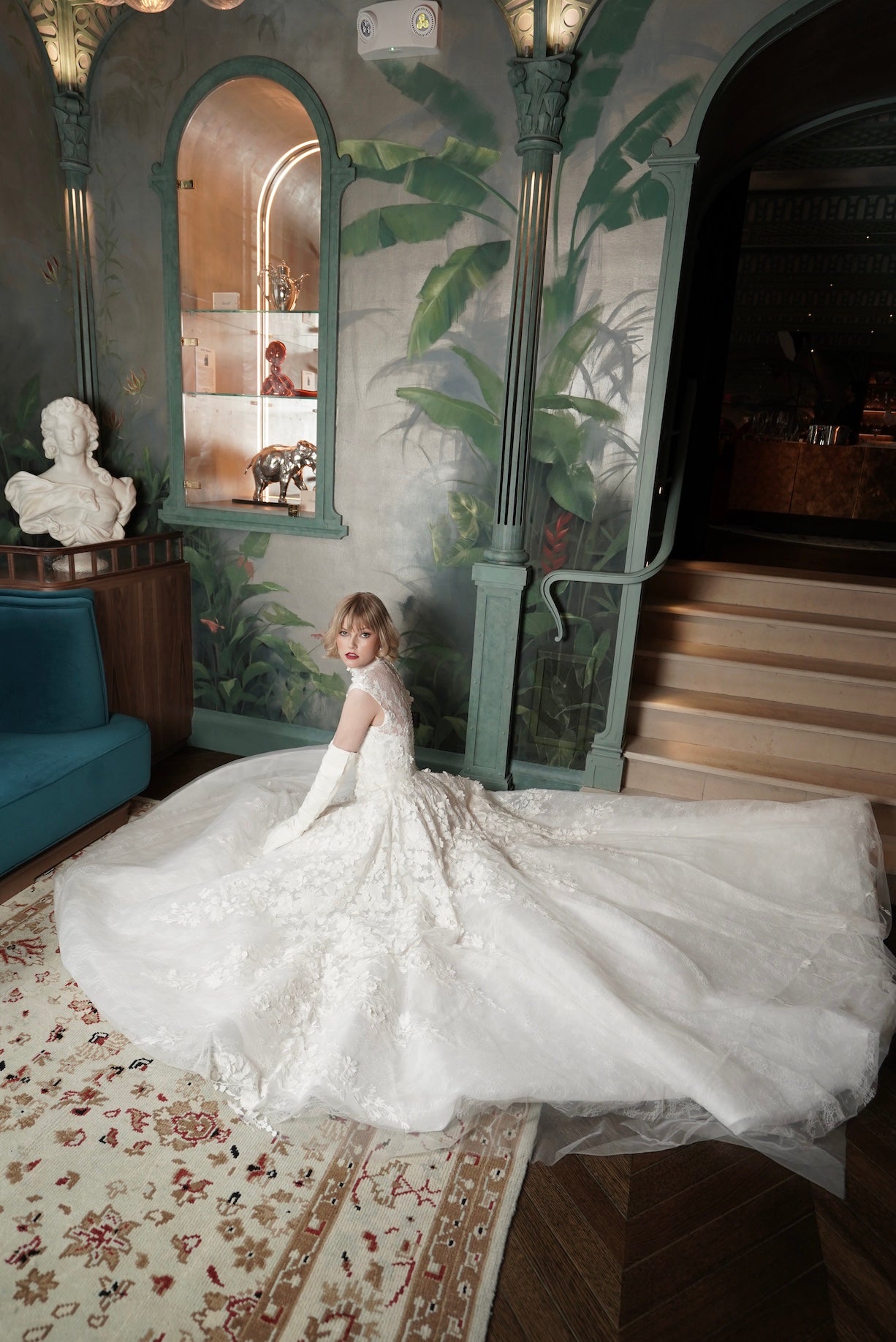 Designed for the discerning bride, this gown balances classic sophistication with modern artistry, making it a perfect choice for a romantic and unforgettable wedding-day look.